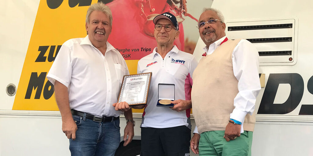 Im Rahmen des 47. AvD-Oldtimer-Grand-Prix auf dem Nürburgring zeichnete der DSK den Rennfahrer und Teamchef Peter Mücke mit seiner höchsten Auszeichnung aus. Vizepräsident Karl-Heinz Stümpert und Schriftführer Johannes Scheid überreichten dem 72 Jahre alten Berliner die Graf-Berghe-von-Trips-Medaille in Gold. Im Gedenken an sein prominentes Gründungsmitglied vergibt der DSK seit 1961 die ‚Graf Berghe von Trips‘-Medaille […]