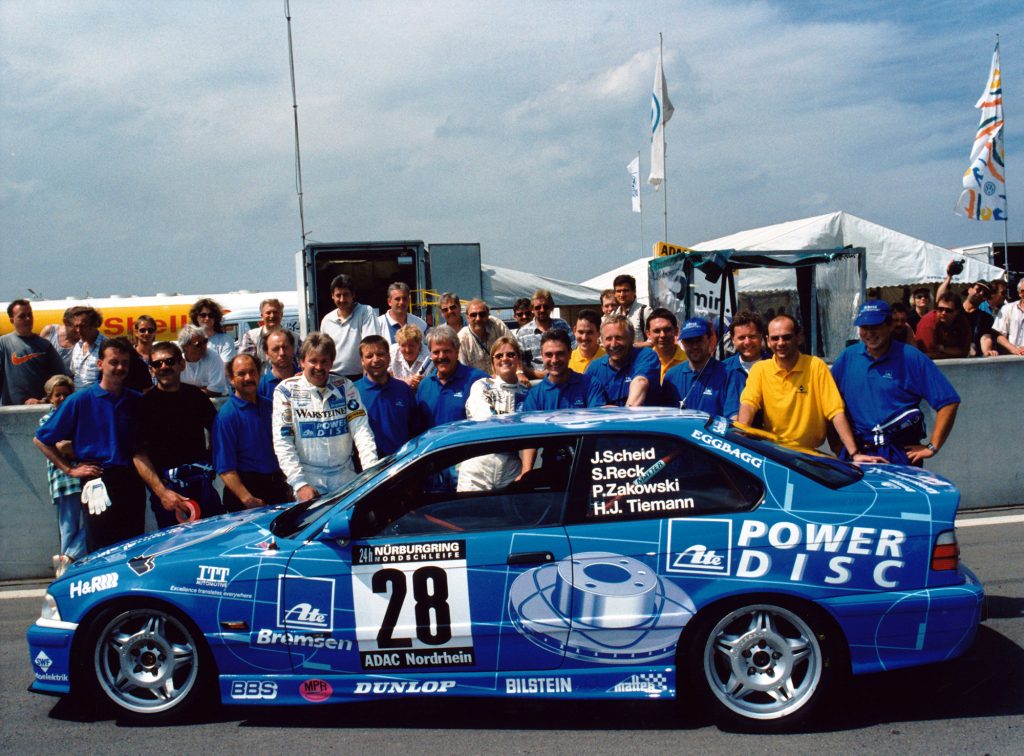 „Von den Umständen her sicher der zweite 1997. Da hatten wir schon nach der ersten Trainingsrunde beinahe einen Totalschaden. Wir haben das Wrack zu uns in die Werkstatt gebracht und alles bis auf den Motor komplett ausgebaut. Bei uns sah es aus wie auf einem Schlachtfeld. Dann haben wir es wieder mit neuen Teilen zusammengesetzt und vermessen, allerdings die komplette Front weggelassen. So ging es dann bei einem Kollegen auf die Richtbank. Dort haben wir es dann fertig zusammengesetzt und standen beim zweiten Training wieder an der Strecke bereit. Ich bin eine Checkrunde gefahren und habe gehört, dass irgendwas klappert. Es stellte sich heraus, dass es ein Teil am Dreieckslenker war. Peter Zakowski war damals auch als Fahrer auf dem Auto dabei. Der hatte eine Dreherei. Also haben wir einen seiner Kollegen nachts aus der Disco geholt, der uns das Teil nachmachen sollte. Leider konnten wir das Material nicht genau bestimmen, also haben wir am Ende einfach das Serienteil aus Gummi genommen. Das ging auch. Wir konnten also ins Rennen starten, waren aber gegen die VWs damals eigentlich unterlegen – zumal dann auch noch unser ABS ausfiel. Wir hatten im Regen aber bei der Reifenwahl das bessere Händchen, mussten weniger Boxenstopps machen und haben auf diese Weise gewonnen.“